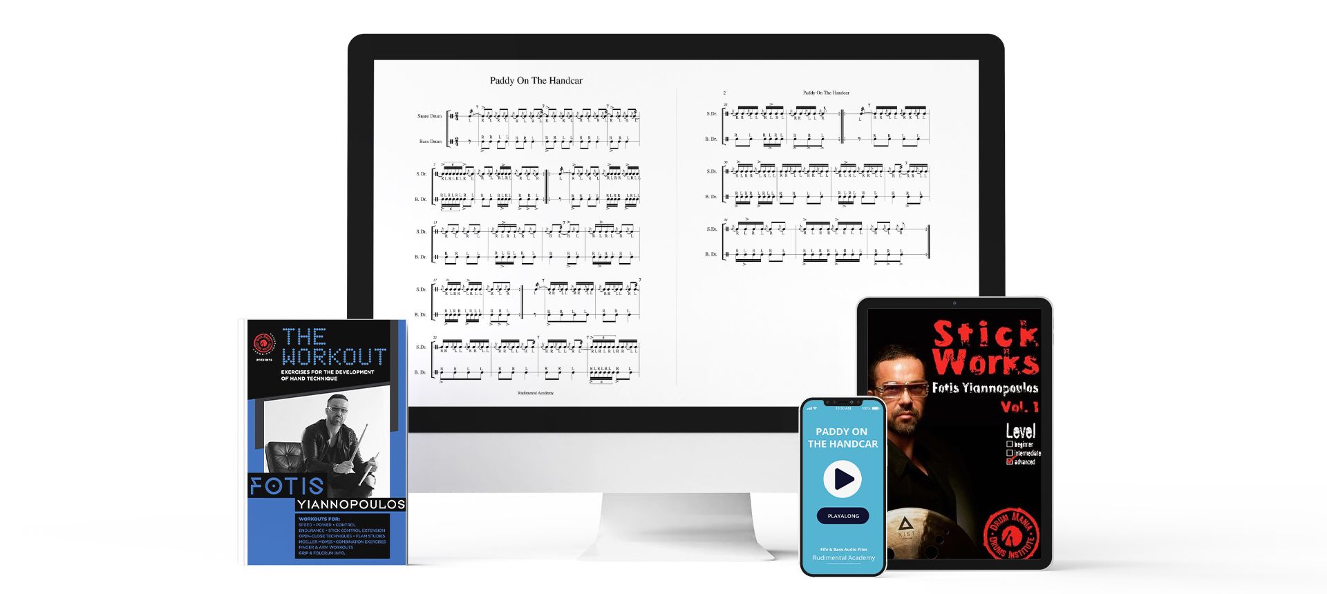 Οι χρήστες του Rudimental Academy έχουν πρόσβαση σε εκπαιδευτικό υλικό που συνοδεύει τα videos, όπως παρτιτούρες, playalongs, DVD και βιβλία, αφιερωμένα για να βελτιώσουν την διδακτική εμπειρία αλλά και την τεχνική τους!