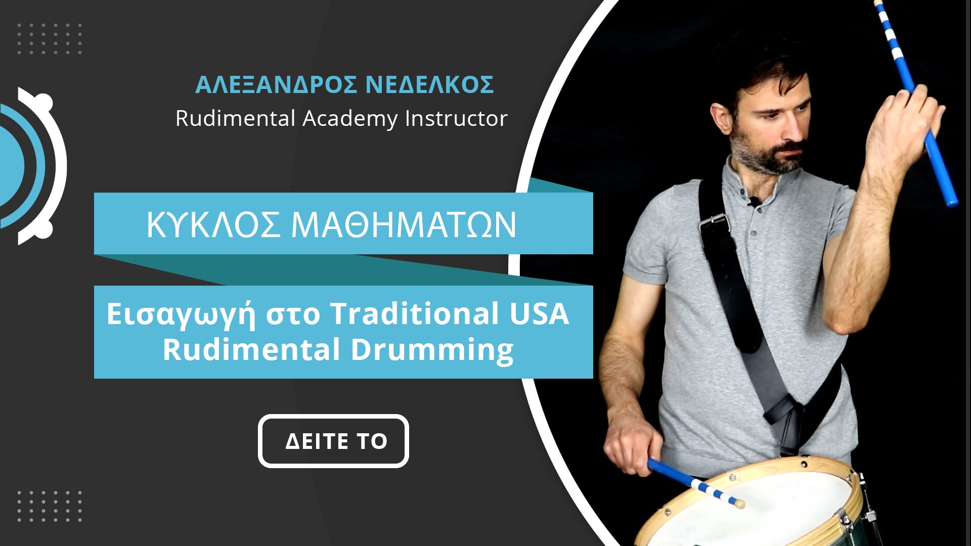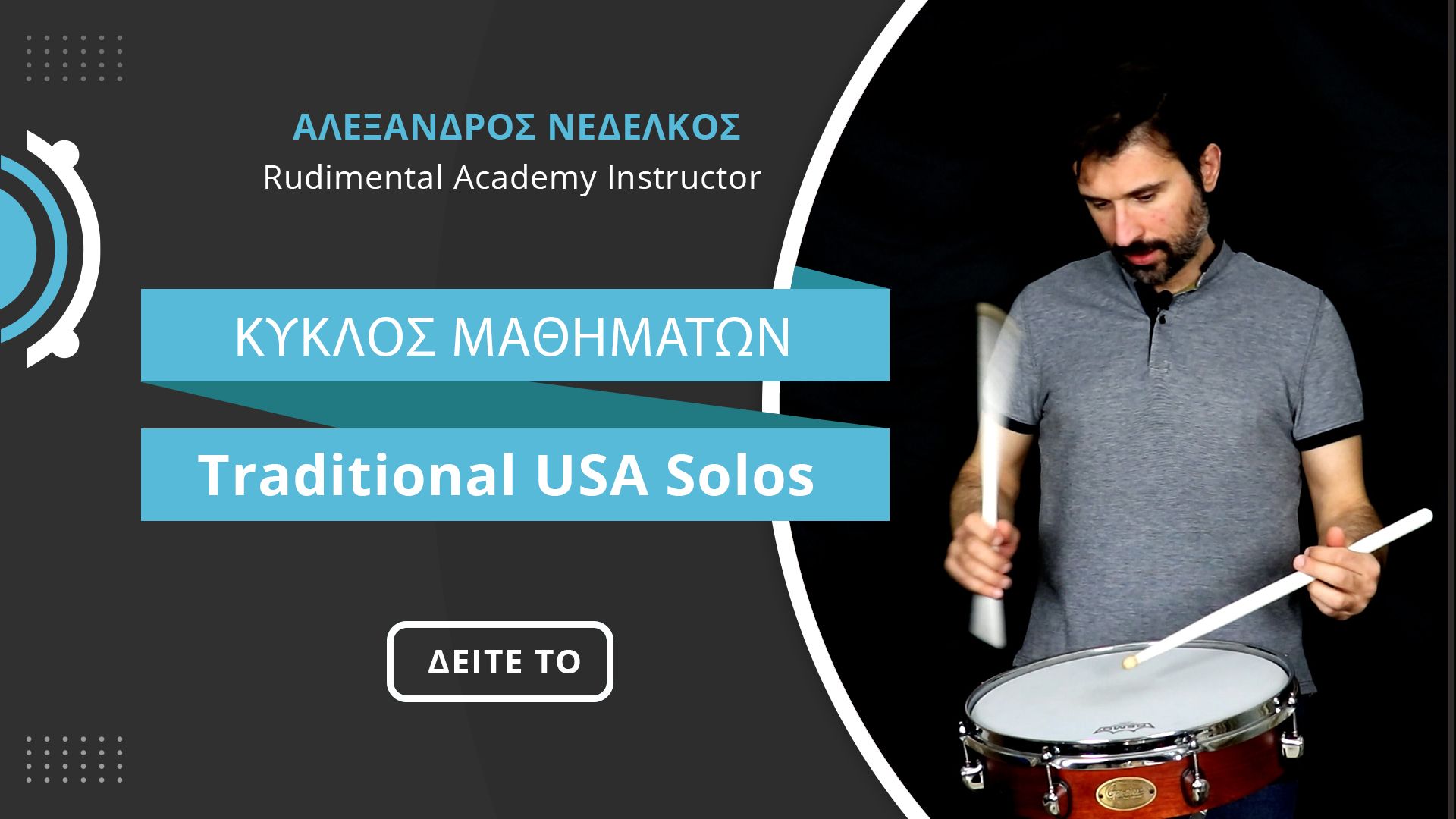 Η online ακαδημία μας απευθύνεται σε όλους τους drummers και κρουστούς όλων των επιπέδων που θέλουν να βελτιώσουν την τεχνική τους και να διευρύνουν την αντίληψη και μουσικότητα στο παίξιμο τους.